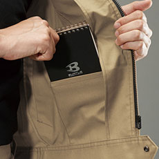 野帳(レベルブック)が入る大容量ポケット(右・深さ21cm)
