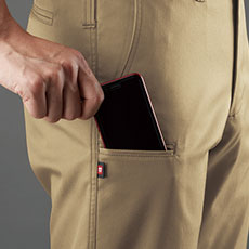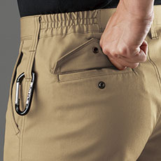 伸縮率が高く、動きやすさアップ!ポリウレタン糸を使っていないので、伸縮性が劣化しにくく、半永久的にストレッチ性が保たれます!通常の作業服よりも15%アップされたストレッチ性で履き心地楽々!