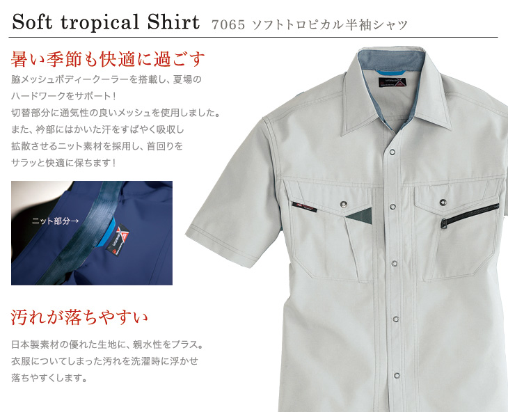 【在庫限り】[春夏用]バートル 7065 ソフトトロピカル半袖シャツ(03-7065)