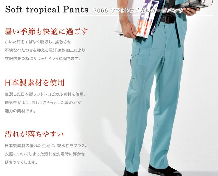[春夏用]バートル 7066 ソフトトロピカルツータックカーゴパンツ(03-7066)