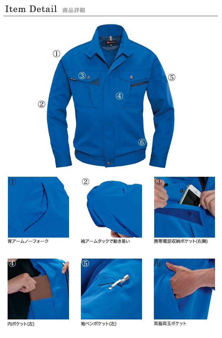 ワークシーンを想定した機能を集約させたポリエステル100%ツイル素材のスタンダードモデル。程よい光沢感できれいめな印象のバートル長袖ブルゾン。