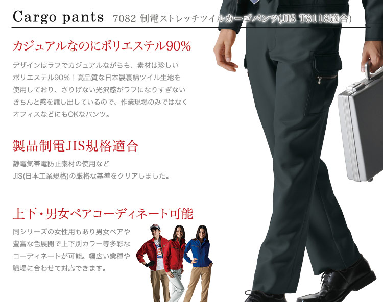 [秋冬用]バートル 7082 制電ストレッチツイルカーゴパンツ[JIS T8118適合](03-7082)