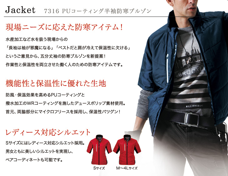 【在庫限り】[秋冬用]バートル PUコーティング半袖防寒ブルゾン(03-7316)