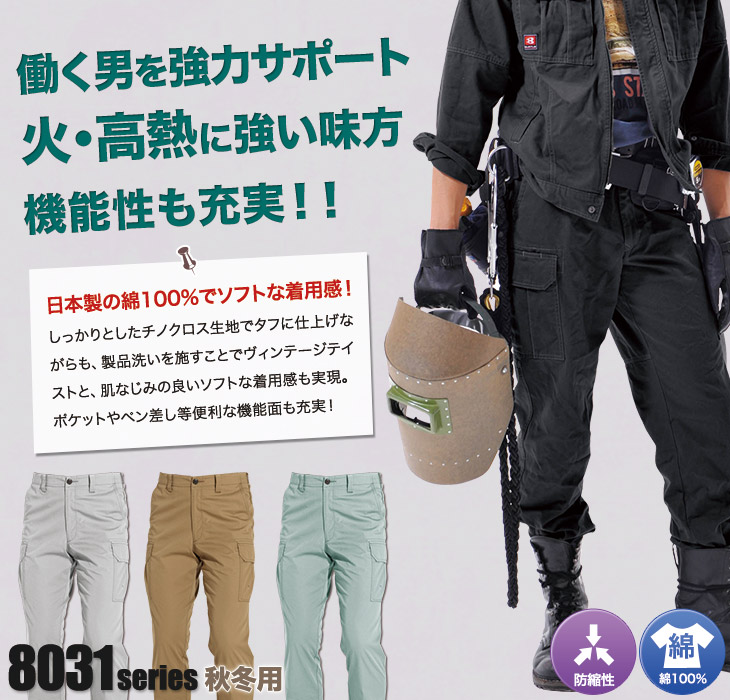 [秋冬用]バートル 8032 チノクロスカーゴパンツ[綿100%](03-8032)