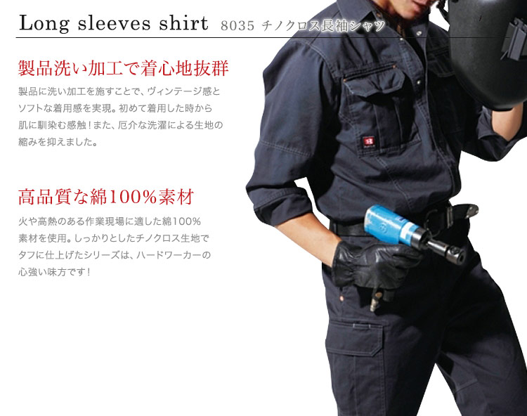 秋冬用の上下(シャツとパンツ)を探していたところ,これと「バートル チノクロスパンツ[綿100%](03-8033)」の組み合わせにたどり着きました。