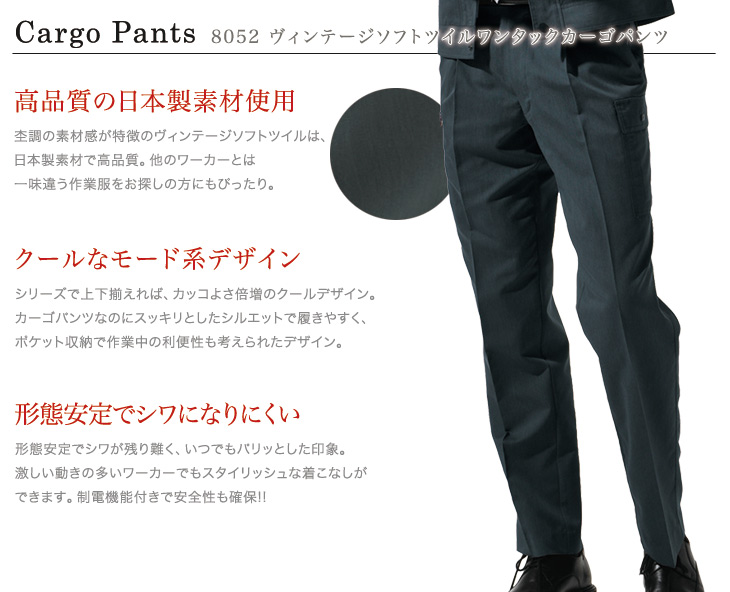 作早2015AW,8051シリーズ,大きい,バートル,クロカメ,カーゴパンツ,かっこいい,秋冬用,キャメル,ストームグレー,シェル,インディゴ,営業,配達,帯電防止