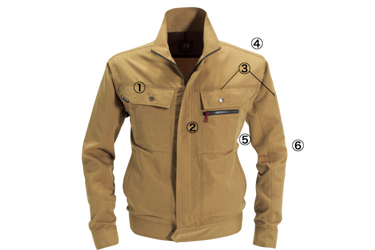 背アームノーフォークメッシュと脇下部分には吸収ニットが配されており、汗をかいても蒸れにくい優れた吸汗速乾性の機能があります。ハードな現場で活躍間違いなしのスタイリッシュかつ機能性抜群な長袖ジャケットです。