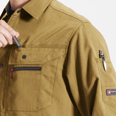 形態安定でシワが残りにくく、いつまでもパリッとした印象。激しい動きの多いワーカーでもスタイリッシュな着こなしができます。静電機能付きで安全性も確保。