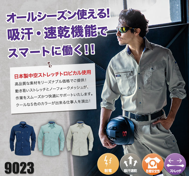 [通年]バートル 9023 制電ストレッチ長袖シャツ(03-9023)