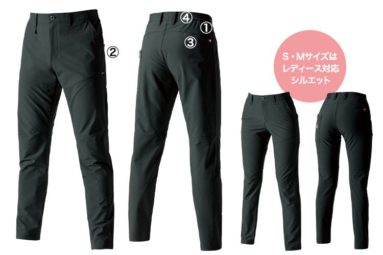 JIS T8118適合の帯電防止性、耐久撥水防汚加工と、多機能なワークパンツ。秋冬用ながらも薄地でしなやかな素材感のため、軽やかな着心地でオールシーズン着用可能です。