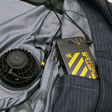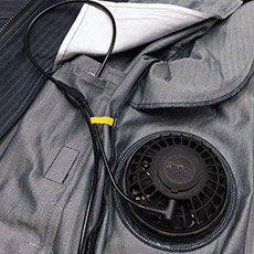 バートルが開発したair craftはワークジャケットに電動ファンを装着。衣服内に空気を取り入れて循環させることで、体表面の汗が蒸発、その気化熱で身体を冷やして清涼な着心地を提供します。