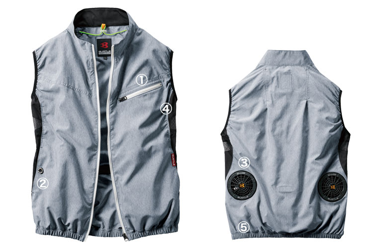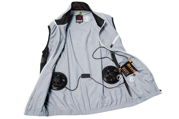 バートルが開発したair craftはワークジャケットに電動ファンを装着。衣服内に空気を取り入れて循環させることで、体表面の汗が蒸発、その気化熱で身体を冷やして清涼な着心地を提供します。
