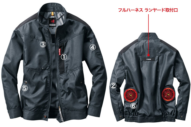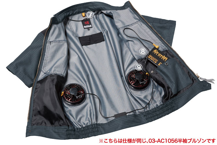 バートルが開発したair craftはワークジャケットに電動ファンを装着。衣服内に空気を取り入れて循環させることで、体表面の汗が蒸発、その気化熱で身体を冷やして清涼な着心地を提供します。