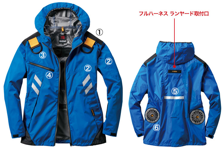 ロイヤルブルー、ネイビー、シルバー,カモフラシルバー,迷彩,安全帯,高所作業,補強布,コーデュラ,ファン付き作業服