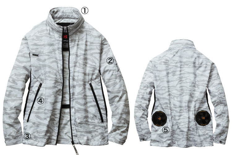 デューク、ライトキャメル、シルバー,カモフラホワイト,迷彩,ファン付き作業服