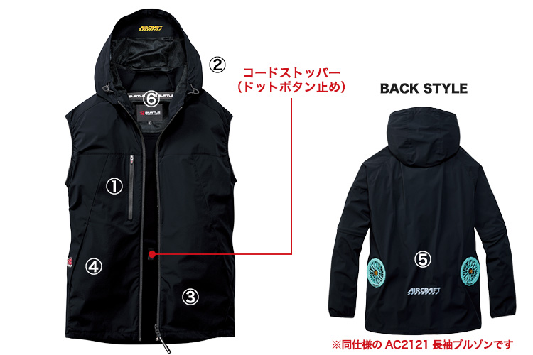 [春夏用]バートル AC2124 エアークラフトローバックファンベスト[男女兼用](03-AC2124)