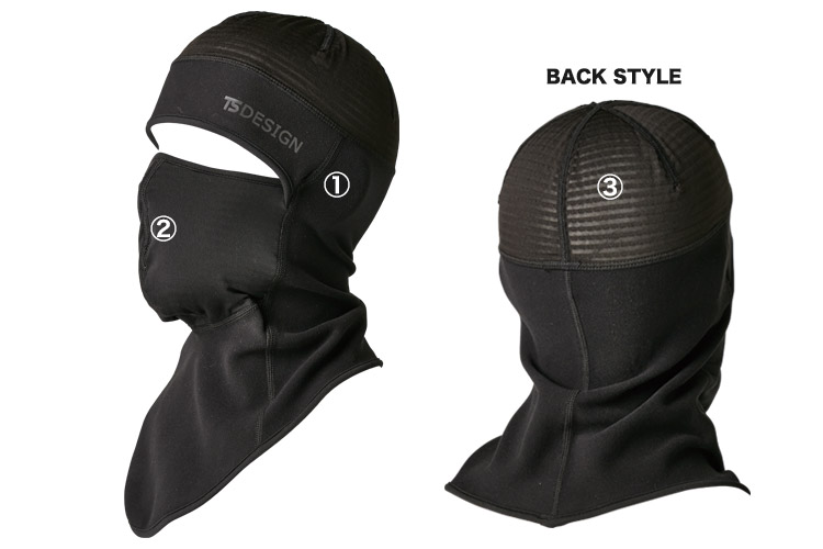 3種類の生地を使い分け、通気性と保温性を持つTSDESIGNの防風バラクラバ。冷気は遮断、過剰な熱は放出し効率よくサポートしてくれます。