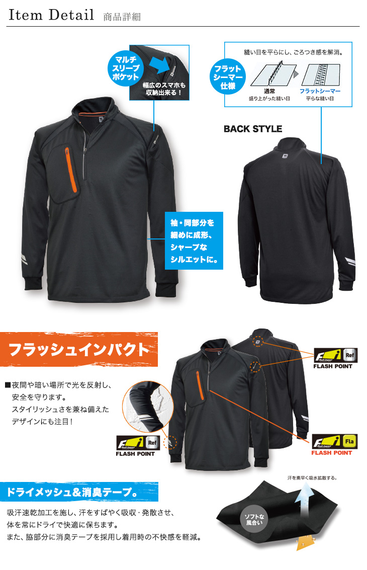 【在庫限り】[通年]FLASHロングスリーブハーフジップシャツ(08-5025)