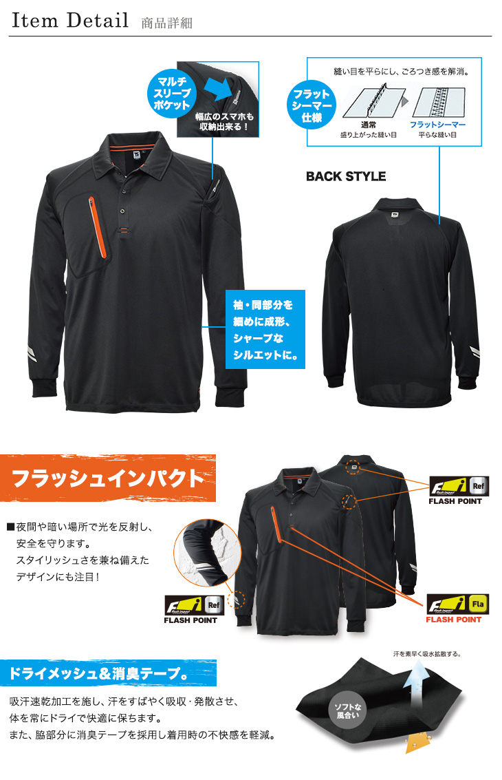 【在庫限り】[通年]FLASH長袖ポロシャツ(08-5075)
