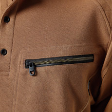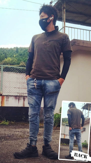 肩は刺し子状の分厚く耐久性に優れた仕様になっているので、重いものを担いても傷みにくいタフなポロシャツ。耐久性に優れつつもおしゃれなデザインなので男女問わずかっこいい着こなしが可能です。