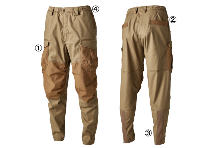 これまでのニッカーズにはないワイドなゆったりシルエットは、かっこいいのに動きやすい。充実の大容量のカーゴポケットも装備。