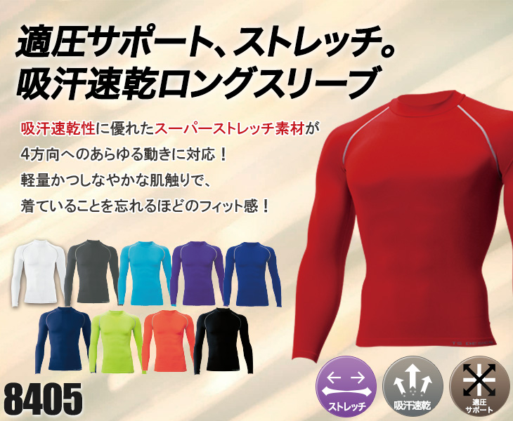 【在庫限り】吸汗速乾ローネックロングスリーブ(08-8405)