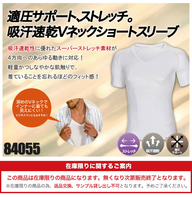 【在庫限り】[通年]吸汗速乾Vネックショートスリーブ(08-84055)