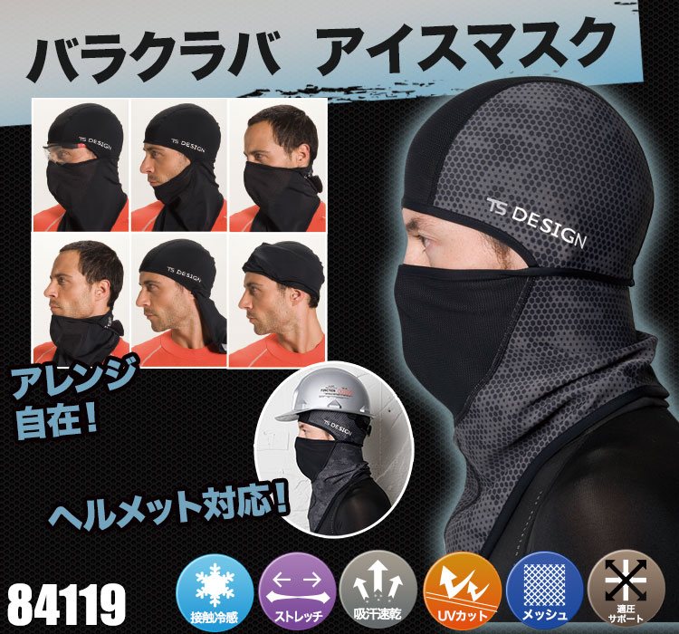 ヘルメットをしたままでも使えるアレンジが自在なバラクラバアイスマスク。