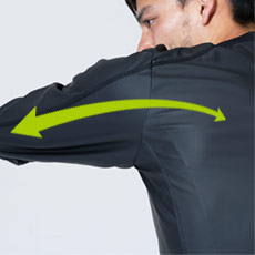 アウターとして着用した際に、暗闇でも安全性を確保する反射パイピング付き。背面の背中部分から腕にかけてのパイピングも反射パイピングになっています。