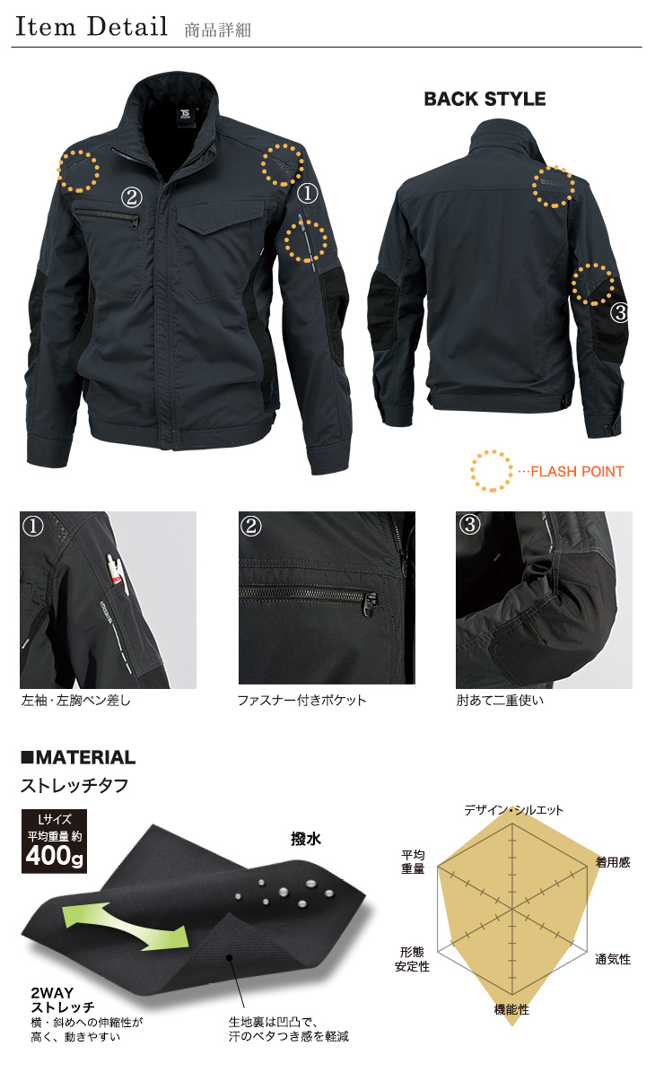 TS DESIGN,藤和,ジャケット,ブルゾン,カジュアル,かっこいい,ストレッチ,超軽量,撥水加工,防汚機能,静電気除去,反射,秋冬,男女兼用