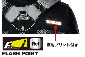 肩に反射パイピング、背面に反射プリントを施しているため 夜間の作業でも光が反射して安全です。