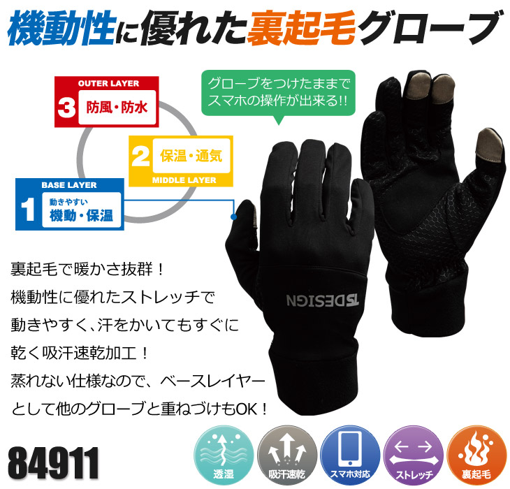 TS DESIGN,藤和,手袋,グローブ,裏起毛,ストレッチ,吸汗速乾,透湿,スマホ対応,秋冬,防寒グッズ