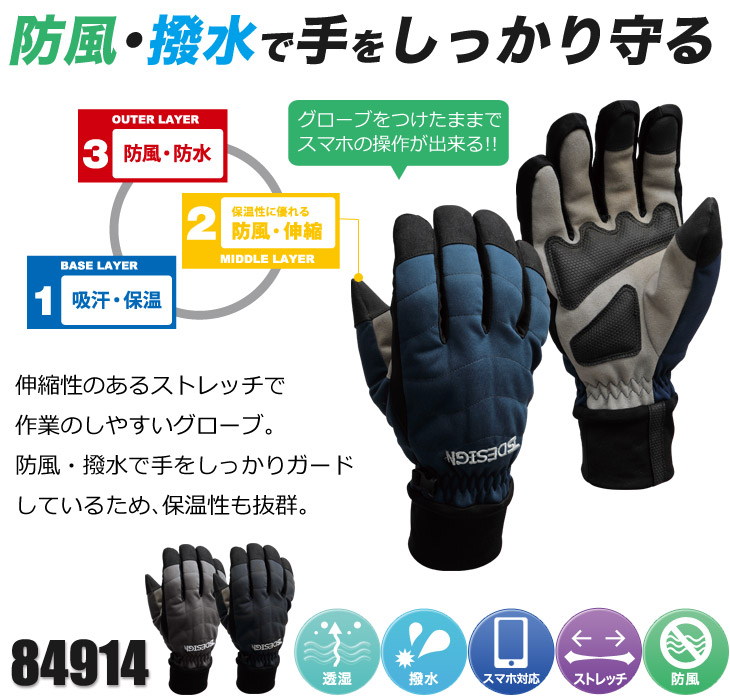 TS DESIGN,藤和,手袋,グローブ,防風,撥水,ストレッチ,透湿,スマホ対応,秋冬,防寒グッズ