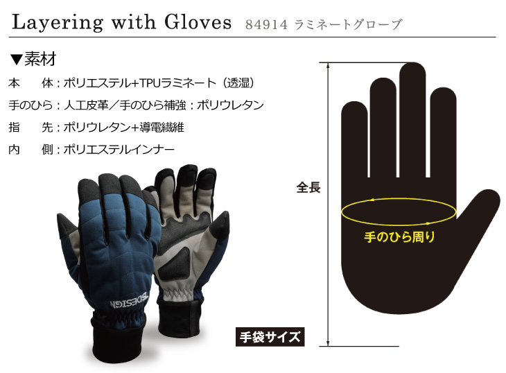 【在庫限り】[秋冬用]ラミネートグローブ(08-84914)