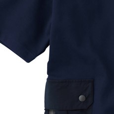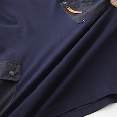 - 高機能プレーティング天竺:綿50%・ポリエステル50%(7oz 200g/m²)、胸・脇ポケット:布帛素材