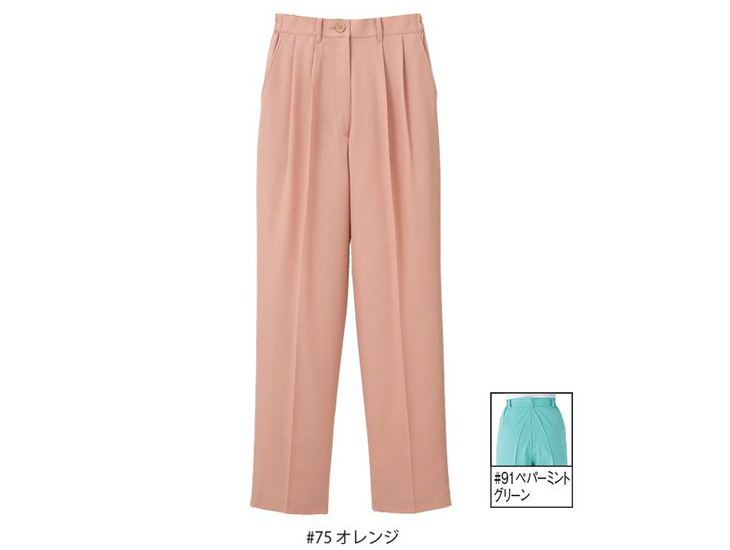 リミット,女性用,レディース,スラックス,パンツ,春夏,制電,生地2,オレンジ,ペパーミントグリーン