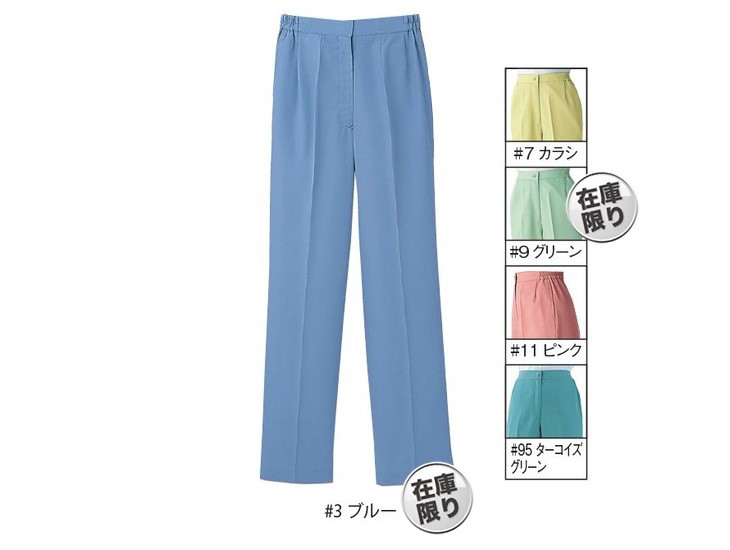 リミット,女性用,レディース,スラックス,パンツ,春夏,制電,生地2,ブルー,カラシ,グリーン,ピンク,ターコイズグリーン