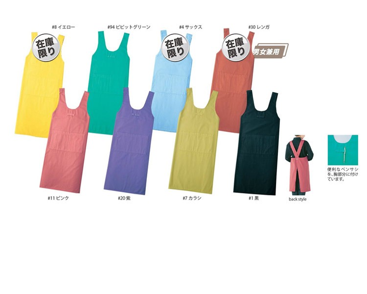 リミット,男女兼用,エプロン,オールシーズン,春夏,秋冬,制電,生地3,黒,サックス,カラシ,ピンク,紫,ビビットグリーン