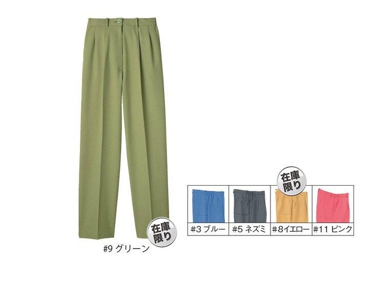 リミット,女性用,レディース,スラックス,パンツ,オールシーズン,春夏,秋冬,制電,生地3,ストレッチ,ブルー,ネズミ,イエロー,グリーン,ピンク
