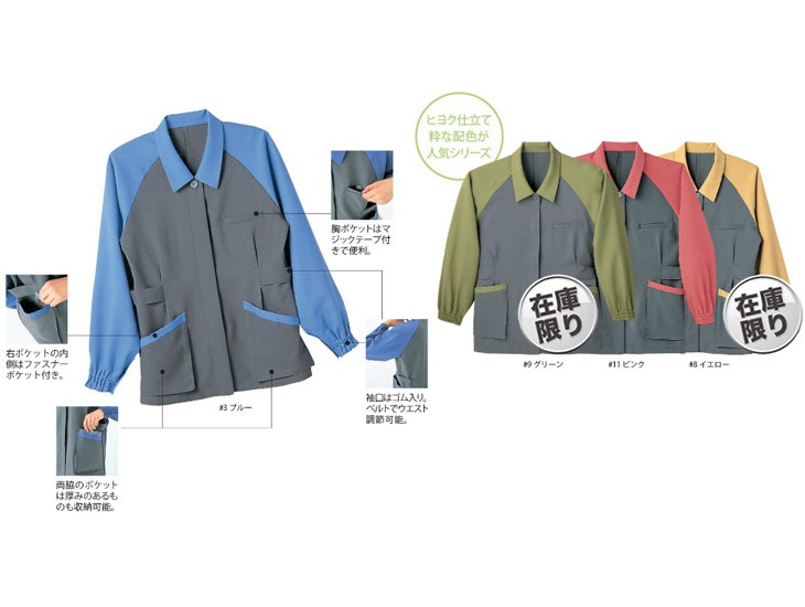 リミット,女性用,レディース,ジャケット,長袖ジャケット,秋冬,制電,生地3,ストレッチ,ブルー,イエロー,グリーン,ピンク
