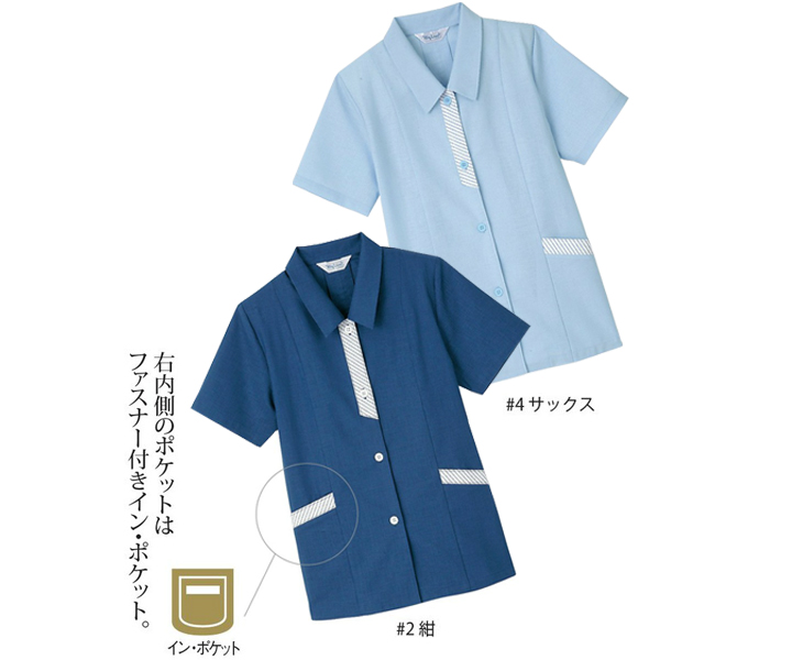 リミット,女性用,レディース,スモック,半袖スモック,春夏,生地1,紺,サックス