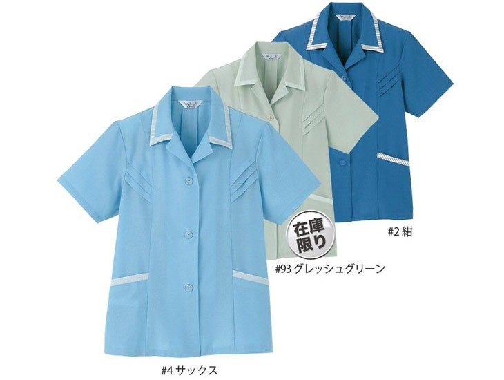 リミット,女性用,レディース,スモック,半袖スモック,春夏,制電,生地1,紺,サックス,グレッシュグリーン