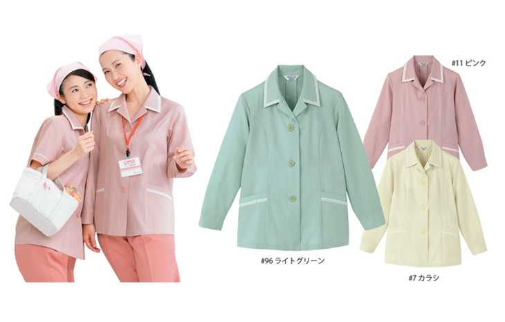 リミット,女性用,レディース,スモック,長袖スモック,オールシーズン,春夏,秋冬,制電,生地1,カラシ,ピンク,ライトグリーン