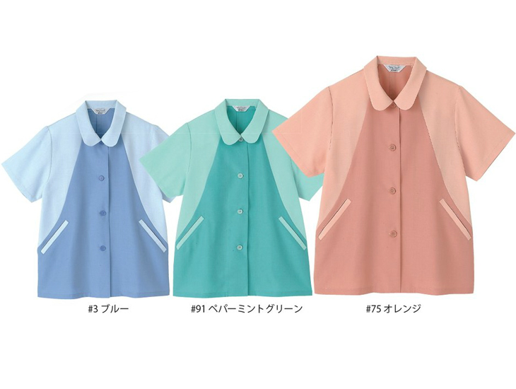 リミット,女性用,レディース,スモック,半袖スモック,春夏,制電,生地2,ブルー,オレンジ,ペパーミントグリーン