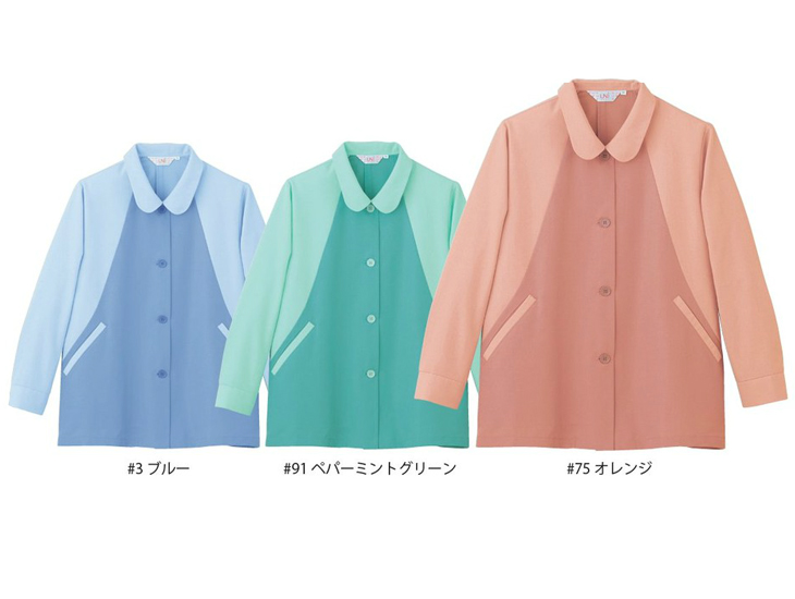リミット,女性用,レディース,スモック,長袖スモック,オールシーズン,春夏,秋冬,制電,生地2,ブルー,オレンジ,ペパーミントグリーン