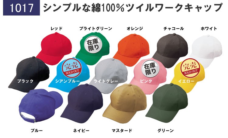 シンプルでカラー豊富なワークキャップ。日差しよけや、ヘルメット着用跡の髪型が気になるときなど。一つあると便利なアイテムです。