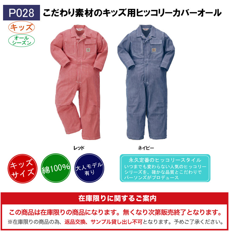 【在庫限り】ヒッコリーキッズカバーオール[パーソンズ](11-P028)
