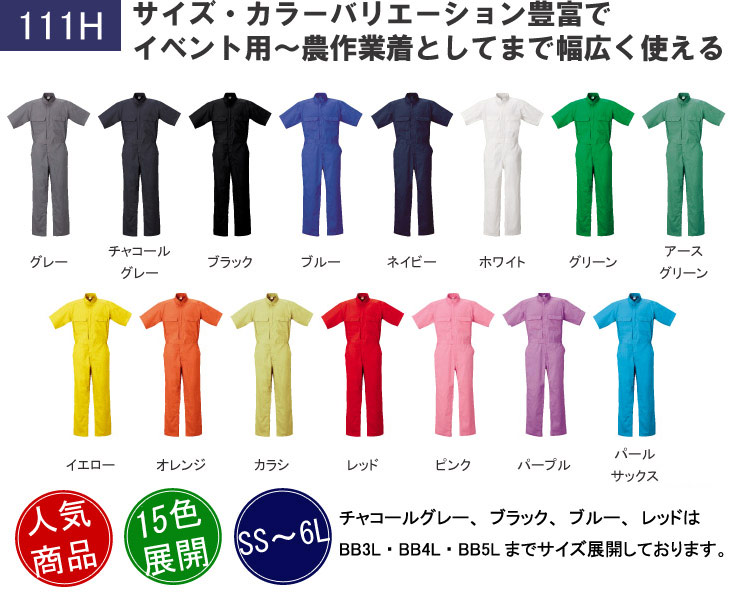 ツヅキ服,続服,自動車整備,バイク,半袖つなぎ,大きい,春夏,ツナギ,つなぎ,半袖,綿100%,カツラギ,女性用,男女兼用,レディース,農業,鉄鋼,イベント,グレー,チャコールグレー,ブラック,ブルー,ネイビー,ホワイト,グリーン,アースグリーン,ブラウン,イエロー,オレンジ,カラシ,レッド,ピンク,パープル,パールサックス,SS,5L,6L,BBL,BB3L,BB4L,BB5l