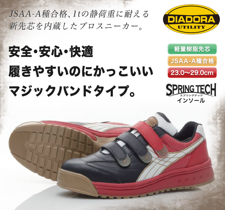 ディアドラ,DIADORA,安全靴,かっこいい安全靴,マジックテープ,耐摩耗,樹脂先芯,セフティシューズ,セーフティシューズ,先芯,耐滑,滑りにくい,