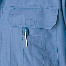 胸ポケットには物落ちを防ぐ大型フラップを採用。左胸にはペンポケット付き。